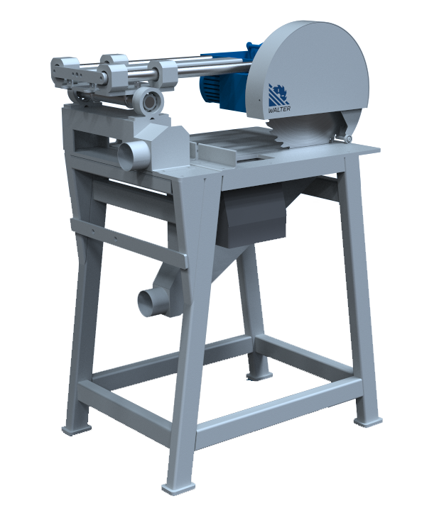 Obrabiarka do poprzecznego przecinania drewna, o wysokości maksymalnej 90mm i szerokości 500mm. Maszynę stanowi korpus oraz zamontowany na nim suport z zespołem napędu piły tarczowej oraz zespół otwierania osłony ruchomej piły. Specyfikacja: Specyfikacja Gabaryty Parametr Wartość Długość 1190 mm Szarokość 560 mm Wysokość 1360 mm Silnik Parametr Wartość Moc silnika napędu *1,5 lub 3,5 kW Prędkość obrotowa piły 2800 obr/min *zależne od wybranego wariantu Wielkości charakterystyczne Parametr Wartość Maks. wys. ciętego materiału 90 mm Maks. szer. ciętego materiału 500 mm Średnica piły tarczowej *350 lub 400 mm *zależne od wybranego wariantu